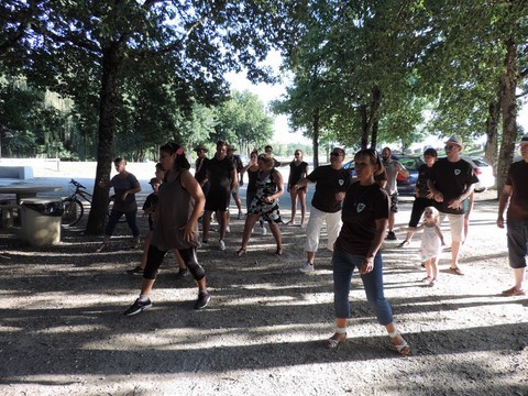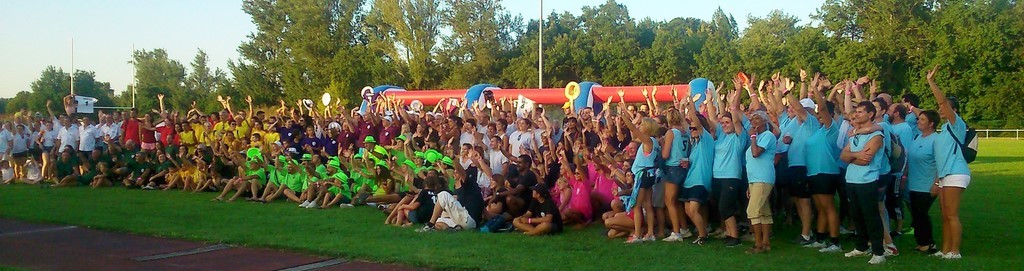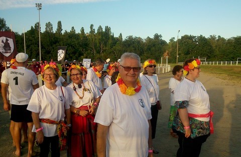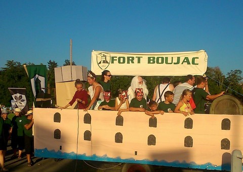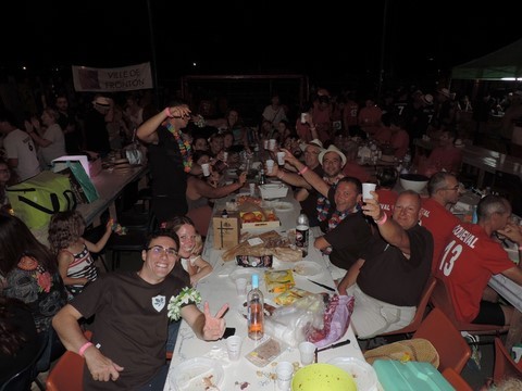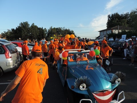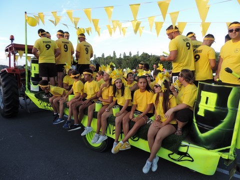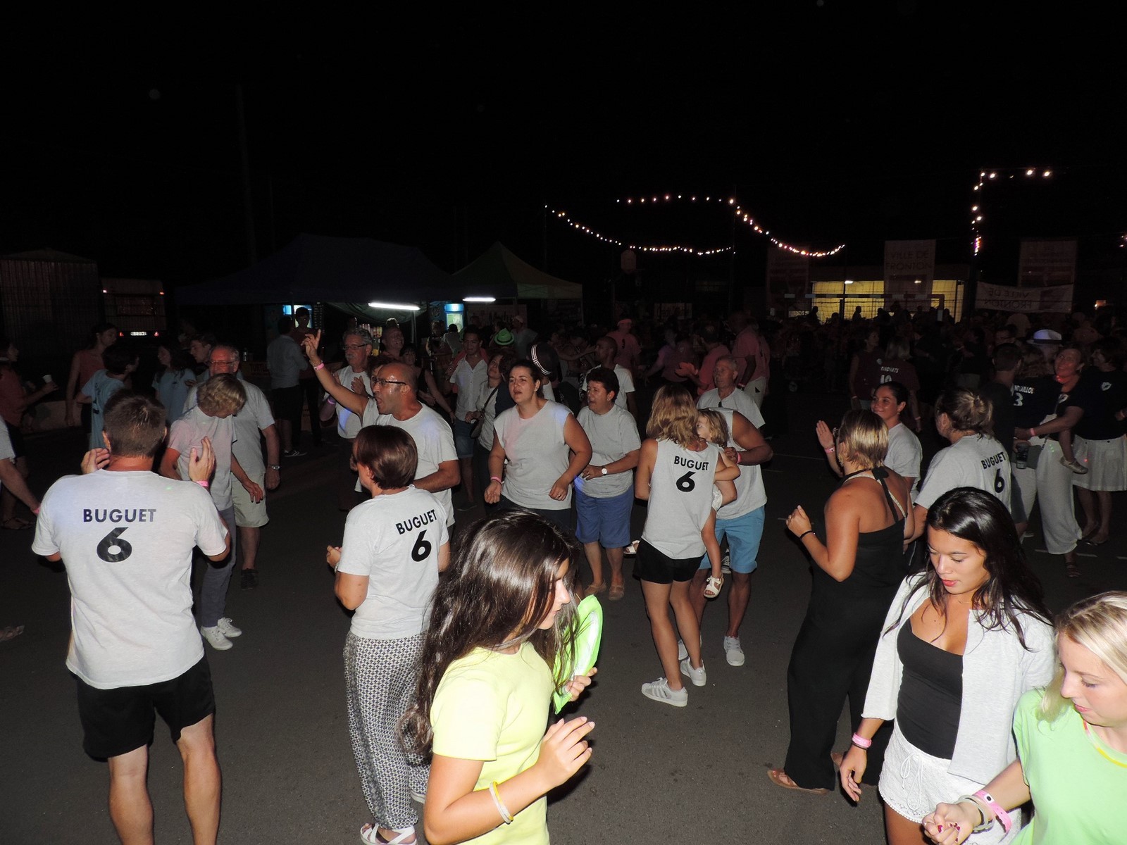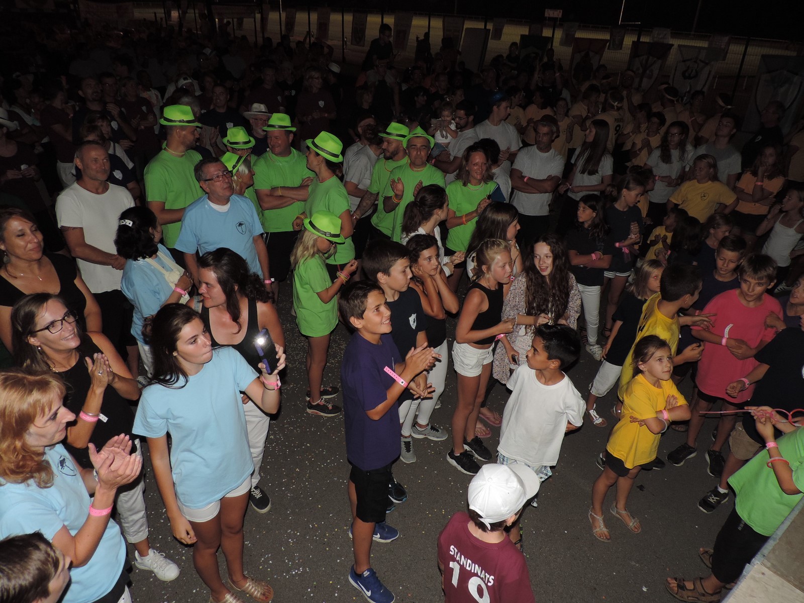 Défile de présentation des équipes de quartiers, avec portes drapeaux blasons, cette année tout à été regroupé au stade où le vin d’honneur offert par la municipalité débute les festivités. Puis le moment tant attendu arrive : le Flash Mob, chaque quartier présenta sa chorégraphie, à tour de rôle pendant le repas sous le principe de l’auberge espagnole.