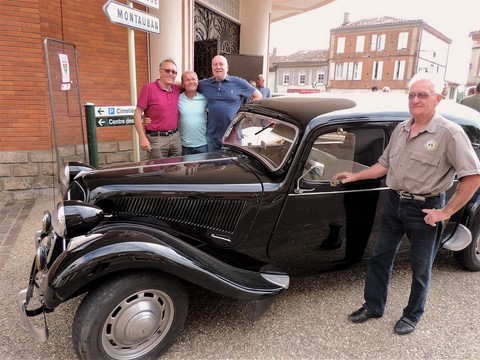 Sur les 2 images images suivantes, Michel Justou et Victor Beltrami les organisateurs à côté de leurs véhicules. Et pas loin... Une partie de la sympathique équipe qui prépare les Olympiades.