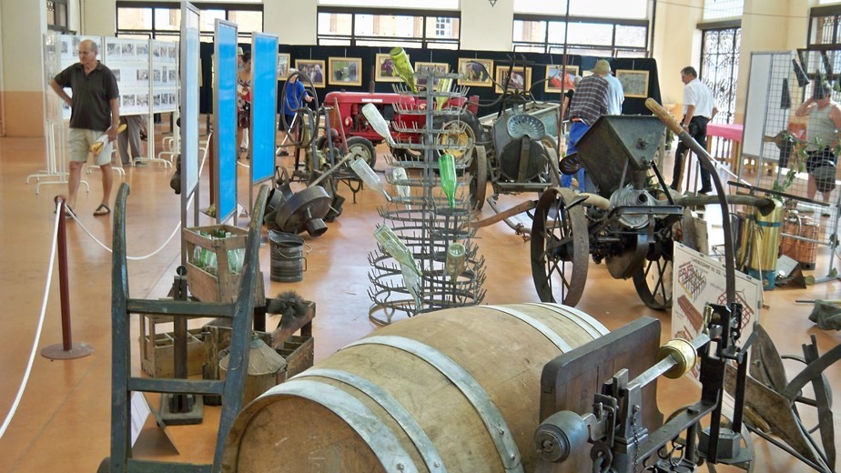 Sous la halle, l'exposition d'outils anciens du travail de la vigne.
