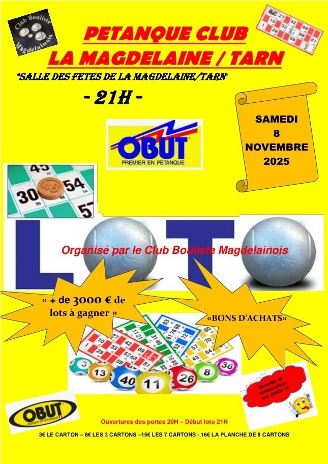 GRISOLLES : Loto du Club des Ainés le 26/10