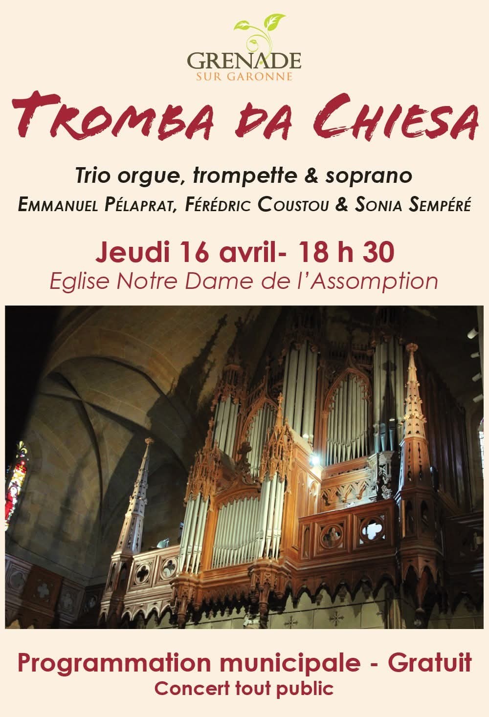LABASTIDE ST PIERRE : Concert le 19/4