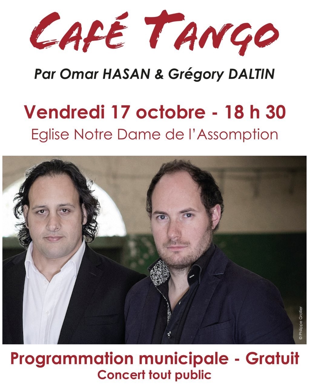 "Le tango est une mélodie qui s’empare de nous en épousant les tourments du cœur et du corps. Le tango, c’est aussi un langage universel, un trait d’union entre les peuples, une escale au bout du monde, l’écho amplifié d’un pays lointain qui nous rapproche les uns des autres quand il nous parle de passion, d’amour, de mélancolie, de folie, de bonheur et aussi de liberté. C’est ce voyage musical rythmé et poétique que le chanteur Omar HASAN et l’accordéoniste Grégory DALTIN proposent d’accomplir en vous embarquant dans des histoires oniriques, insensées ou quotidiennes. Un répertoire voyageur qui dépassera les frontières du Tango. Un voyage aux multiples escales musicales, le temps d’un ... Café Tango."