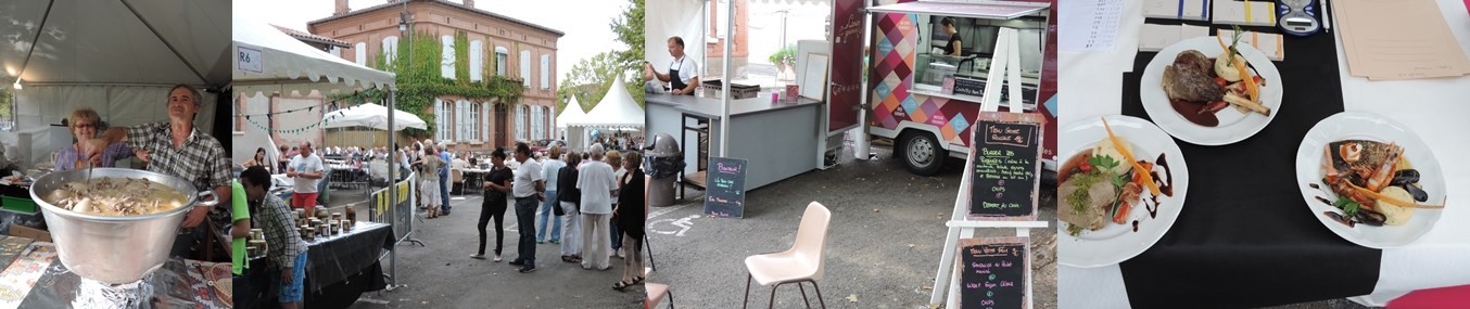 De nombreux points de dégustation sont à la disposition des visiteurs avec à partir de la gauche : La ferme des Téoulets (avec Natacha qui produit des canards, elle est présente tous les jeudis au marché sous la halle), Le Marquisat, le Camion gourmand et bien sur Ava traiteur qui à remporté un grand succès avec sa souris d'agneau, sa parillade de poisson et son veau fondant.